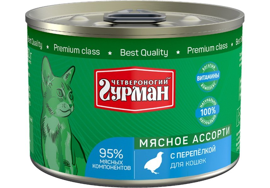 Четвероногий Гурман Мясное ассорти Консервы для кошек с Перепелкой (цена за упаковку) 190г х 12шт