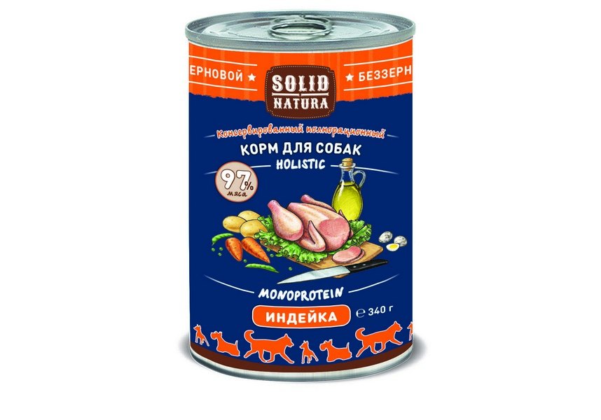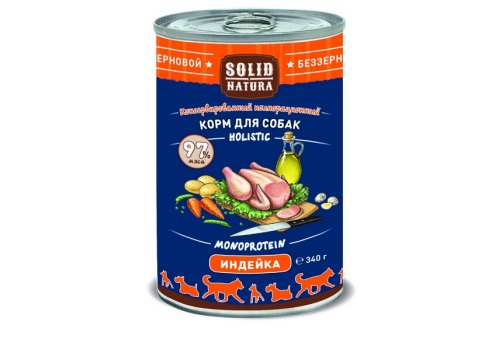 Solid Natura Holistic Monoprotein Консервы Солид Натура Беззерновые для собак Индейка (цена за упаковку) 340г х 12шт