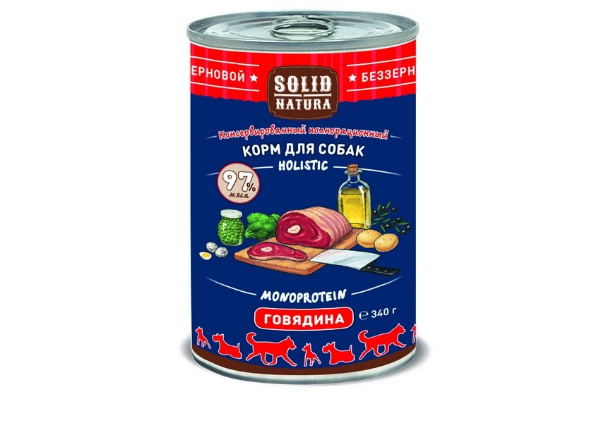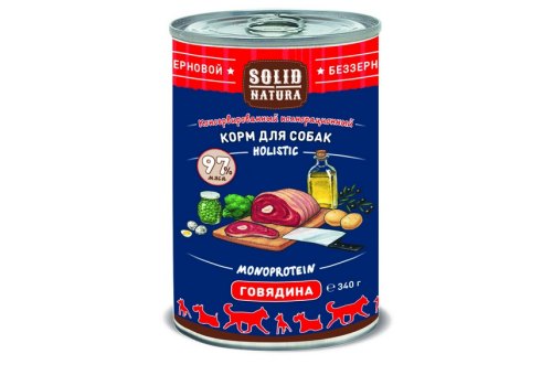 Solid Natura Holistic Monoprotein Консервы Солид Натура Беззерновые для собак Говядина (цена за упаковку) 340г х 12шт