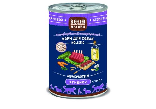 Solid Natura Holistic Monoprotein Консервы Солид Натура Беззерновые для собак Ягнёнок (цена за упаковку) 340г х 12шт
