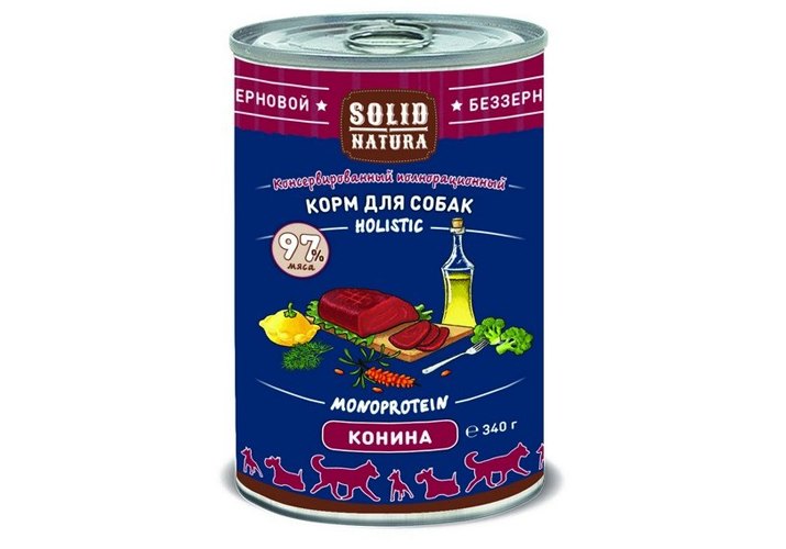 Solid Natura Holistic Monoprotein Консервы Солид Натура Беззерновые для собак Конина (цена за упаковку) 340г х 12шт