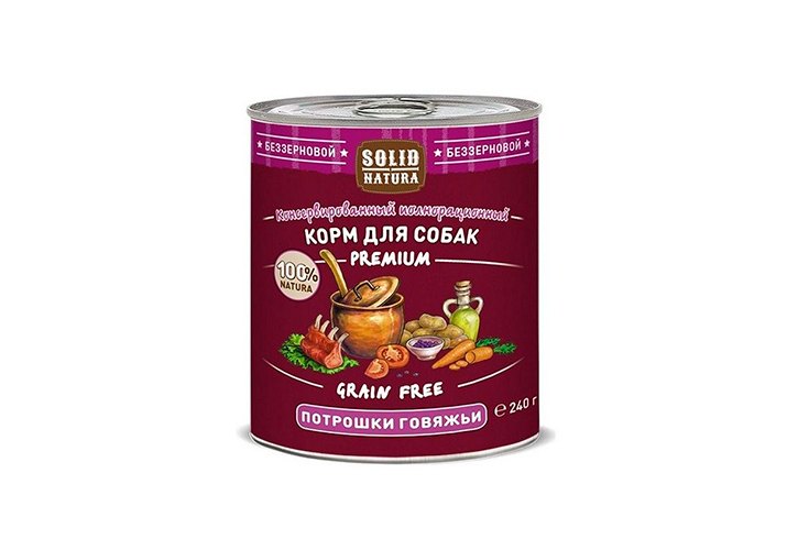 Solid Natura Premium Grain Free Консервы Солид Натура Беззерновые для собак Потрошки говяжьи (цена за упаковку) 240г х 6шт
