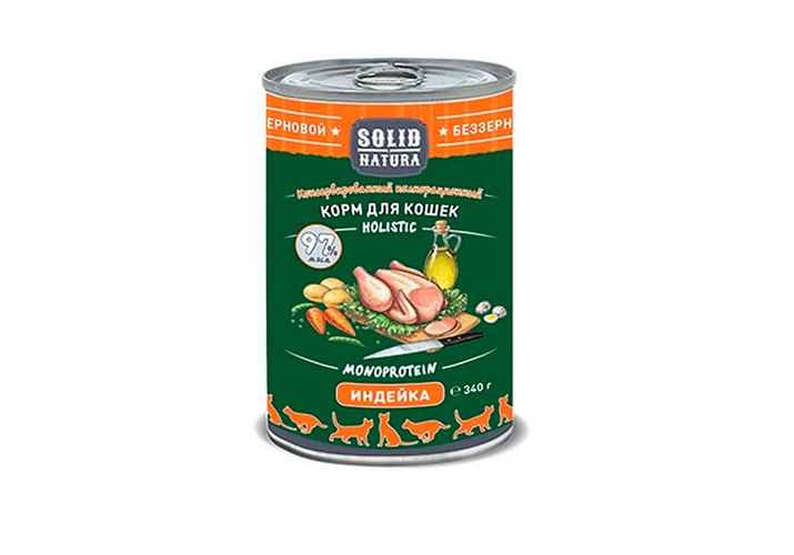 Solid Natura Holistic Monoprotein Консервы Солид Натура Беззерновые для кошек Индейка (цена за упаковку) 340г х 12шт