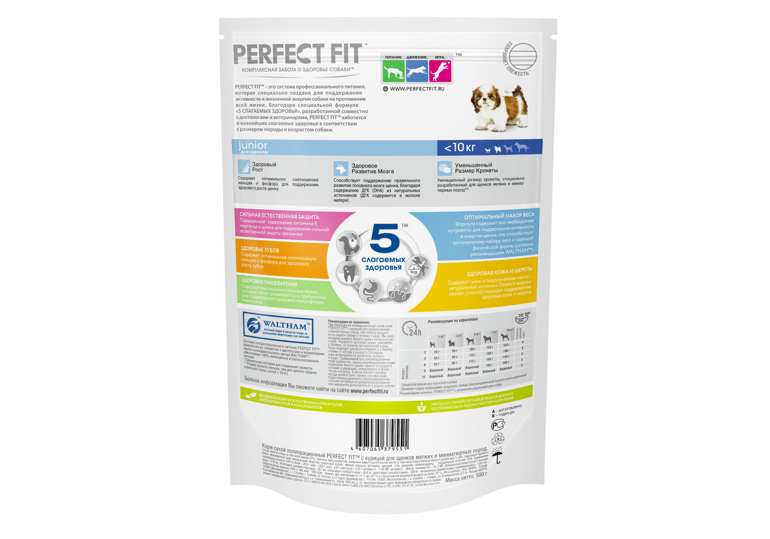В основе профессионального рациона Perfect Fit™ лежит уникальная формула PERFECT FIT™ TOTAL 5 FORMULA, которая заботится о важнейших слагаемых здоровья в соответствии с размером и возрастом собаки.