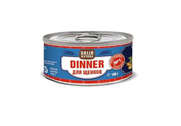 Solid Natura Dinner Консервы Солид Натура Беззерновые для Щенков Телятина (цена за упаковку) 100г х 12шт