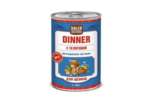 Solid Natura Dinner Консервы Солид Натура Беззерновые для Щенков Телятина (цена за упаковку) 340г х 12шт