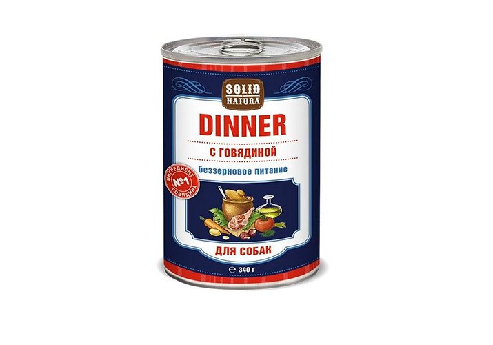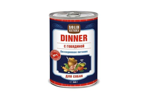 Solid Natura Dinner Консервы Солид Натура Беззерновые для собак Говядина (цена за упаковку) 340г х 12шт
