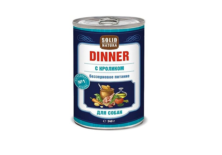 Solid Natura Dinner Консервы Солид Натура Беззерновые для собак Кролик (цена за упаковку) 340г х 12шт