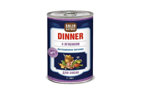 Solid Natura Dinner Консервы Солид Натура Беззерновые для собак Ягненок (цена за упаковку) 340г х 12шт