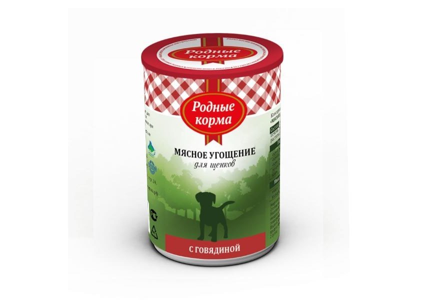 Родные Корма Консервы Мясное угощение для Щенков с Говядиной (цена за упаковку) 340г х 6шт