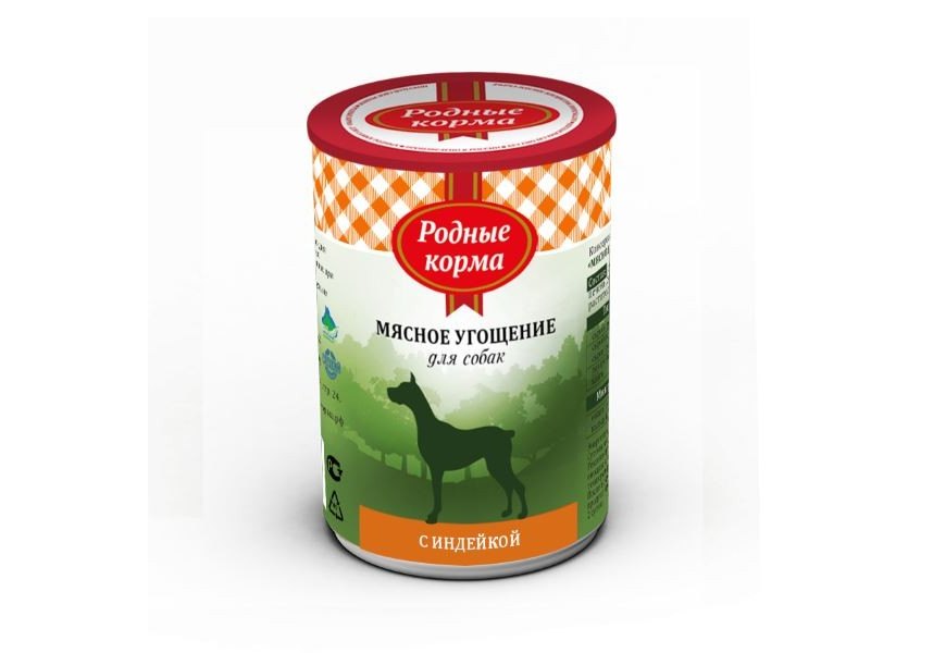 Родные Корма Консервы Мясное угощение для собак с Индейкой (цена за упаковку) 340г х 6шт