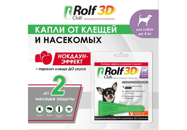 Rolf Club 3D Капли Рольф Клуб от Клещей и Блох для собак весом до 4 кг 1 шт