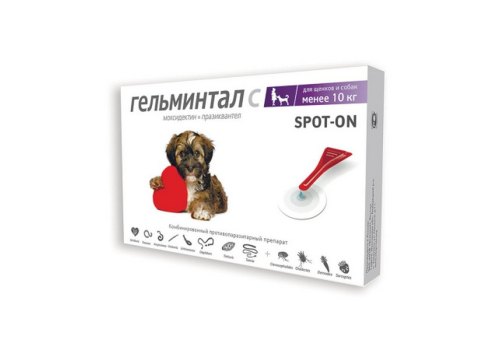Гельминтал С Spot-on Капли от Гельминтов на холку для Щенков и собак весом до 10 кг 1 х 2 шт