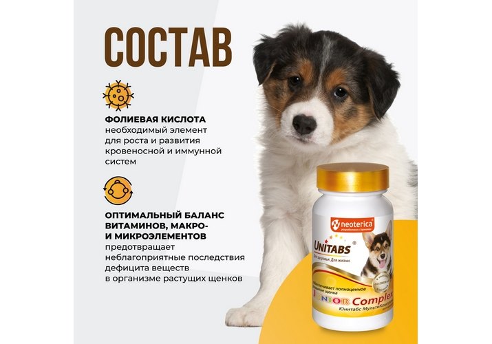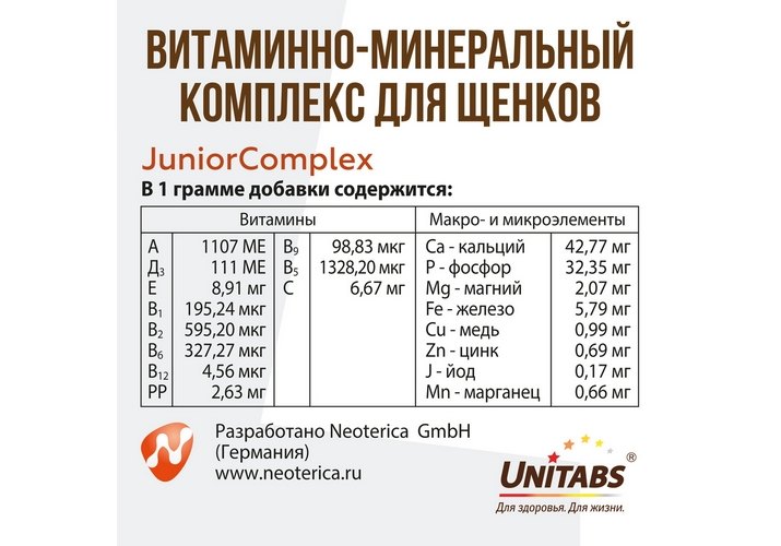 Unitabs JuniorComplex Витаминно-минеральный комплекс Юнитабс для Щенков 100 таб