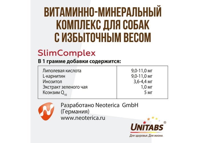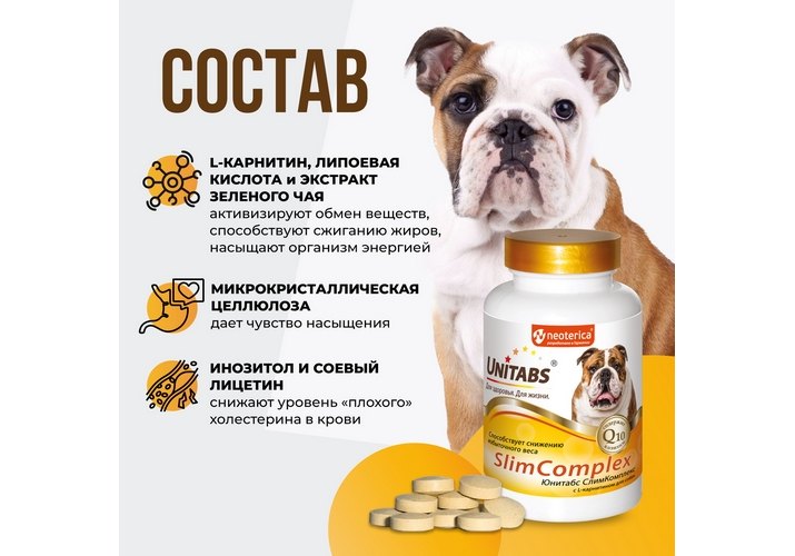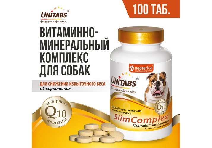 Unitabs Slim Complex UT c Q10 Витаминно-минеральный комплекс Юнитабс для собак с L-карнитином 100 таб