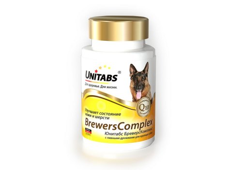 Unitabs BrewersComplex с Q10 Витаминно-минеральный комплекс Юнитабс для Крупных собак с Пивными дрожжами 100 таб