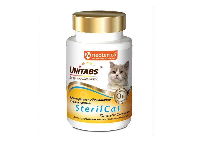 Unitabs SterilCat с Q10 Витаминно-минеральный комплекс Юнитабс для Кастрированных котов и Стерилизованных кошек 120 таб