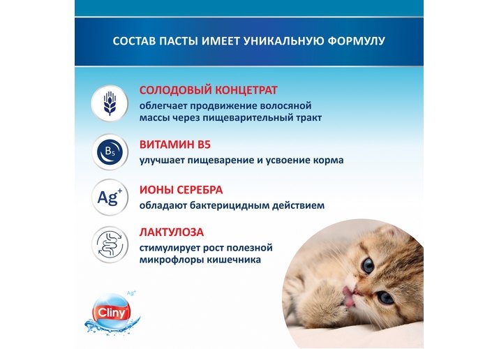 Cliny Паста Клини с ионами Серебра для кошек для Вывода Шерсти 30 мл