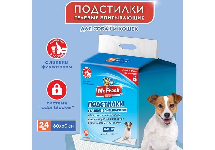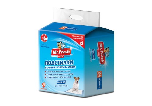 Mr.Fresh Expert Regular Подстилки Мистер Фреш Гелевые впитывающие с Липкими фиксаторами 60х60см 24шт