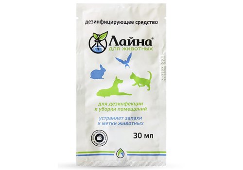 Лайна для животных является профессиональным дезинфицирующим средством, предназначенным для дезинфекции и уборки помещений, где содержатся домашние животные. Лайна обладает широким спектром антимикробного действия в отношении возбудителей инфекционных болезней бактериальной, вирусной и грибковой этиологии, отличными моющими и дезодорирующими свойствами, при проведении генеральных уборок удаляет метки животных и жировые загрязнения, устраняет неприятные запахи. Дезинфекция может быть совмещена с мойкой и дезодорацией в одном процессе.