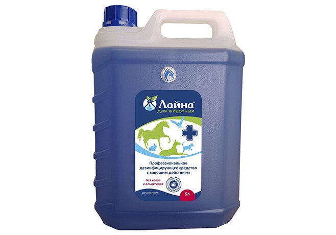 Лайна для животных является профессиональным дезинфицирующим средством, предназначенным для дезинфекции и уборки помещений, где содержатся домашние животные. Лайна обладает широким спектром антимикробного действия в отношении возбудителей инфекционных болезней бактериальной, вирусной и грибковой этиологии, отличными моющими и дезодорирующими свойствами, при проведении генеральных уборок удаляет метки животных и жировые загрязнения, устраняет неприятные запахи. Дезинфекция может быть совмещена с мойкой и дезодорацией в одном процессе.
