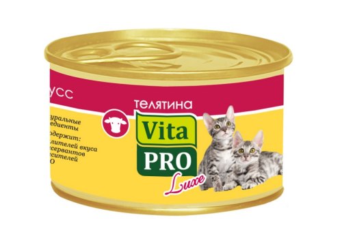 Vita Pro Luxe Консервы Вита Про для Котят до 1 года Мусс Телятина (цена за упаковку) 85г х 24шт