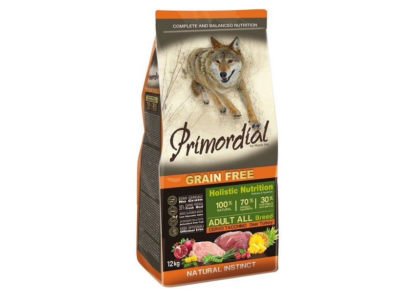 Primordial Adult Grain Free Holistic Сухой корм Примордиал Беззерновой для собак Оленина Индейка 12 кг