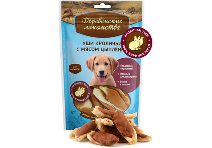 Деревенские лакомства 100% Мяса Уши Кроличьи с мясом Цыпленка 90 г