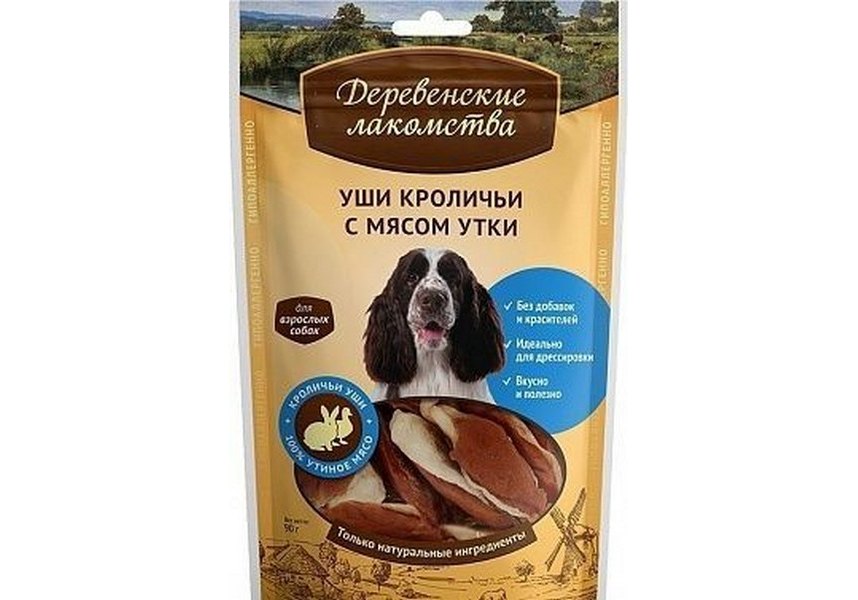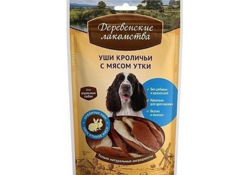 Деревенские лакомства 100% Мяса Уши Кроличьи с мясом Утки 90 г