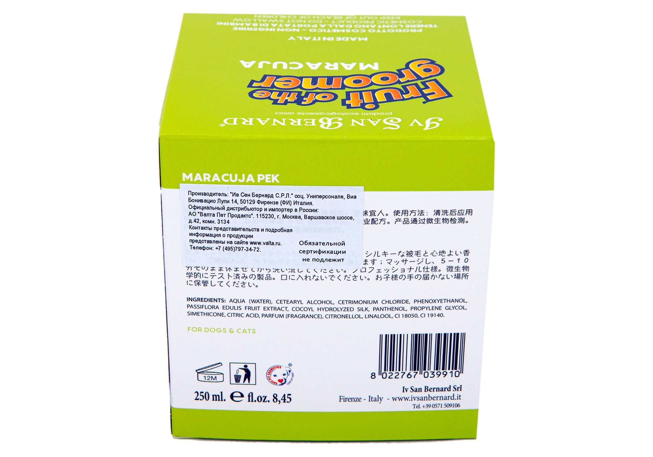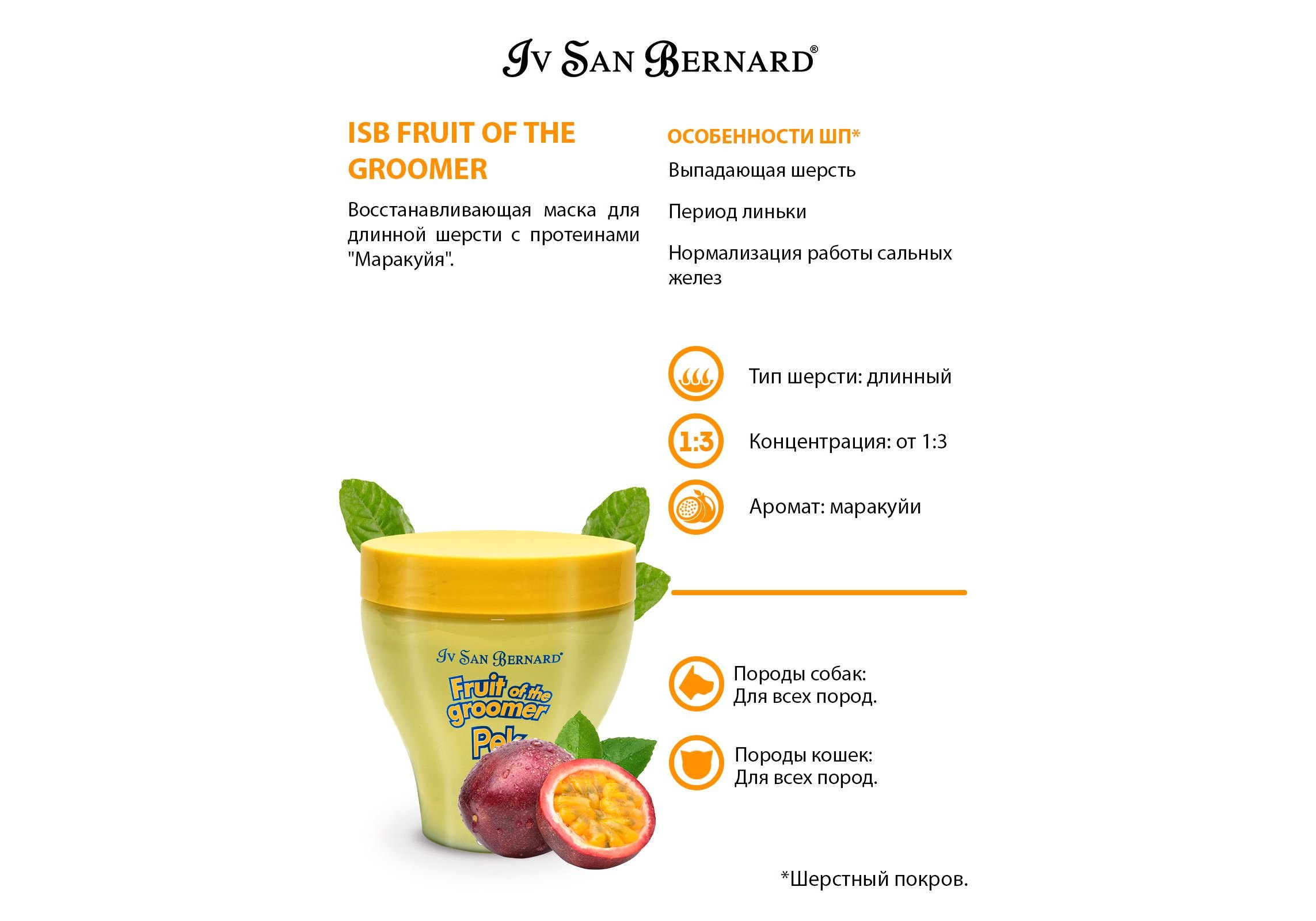 Iv San Bernard Fruit of the Groomer Maracuja Mask Long coat Маска Ив Сан Бернард для Длинной шерсти с Протеинами Восстанавливающая 250 мл