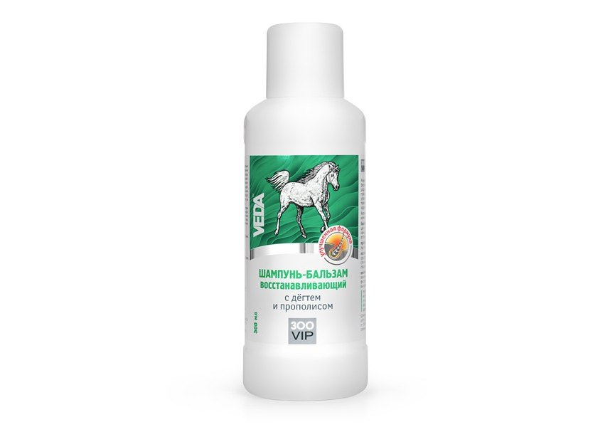 Veda ЗооVip Шампунь-бальзам для лошадей Восстанавливающий с Дегтем и Прополисом 500 мл