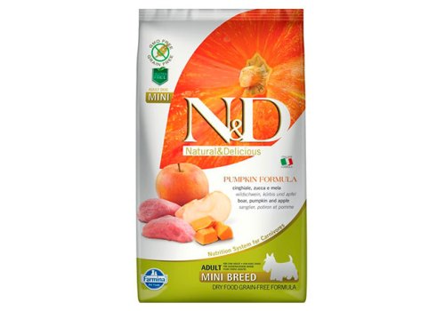 Farmina N&D Pumpkin Line Adult Mini Boar & Apple Grain free Сухой Беззерновой корм Фармина для взрослых собак Мелких пород Кабан с Яблоком и Тыквой 7 кг