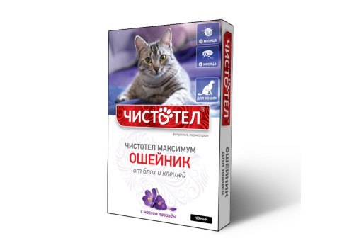 Чистотел Максимум Ошейник для кошек от Блох и Клещей Черный