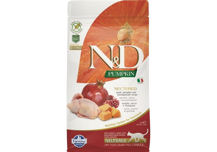Farmina N&D Pumpkin Line Adult Neutered Pumpkin Quail Grain free Сухой Беззерновой корм Фармина для Стерилизованных кошек и Кастрированных котов Перепел с Тыквой 1,5 кг