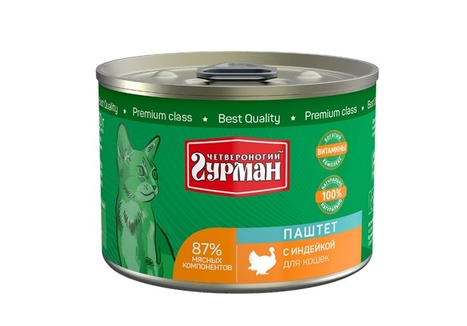Четвероногий Гурман Консервы для кошек Паштет с Индейкой (цена за упаковку) 190г х 12шт