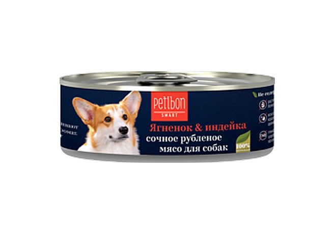 Petibon Smart Консервы Петибон Смарт для собак Рубленое мясо Ягненок Индейка (цена за упаковку) 100г х 24шт