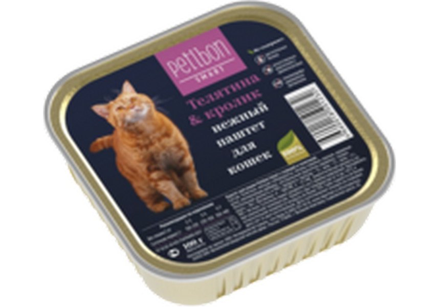 Petibon Smart Консервы Петибон Смарт для кошек Паштет Телятина & Кролик (цена за упаковку) 100г х 24шт