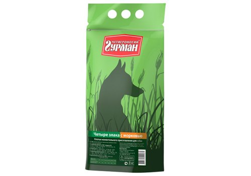 Четвероногий Гурман Каша для собак 4 злака с Морковью (Зеленый пакет) 3 кг