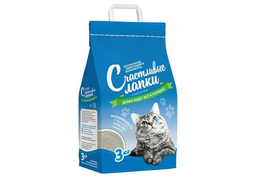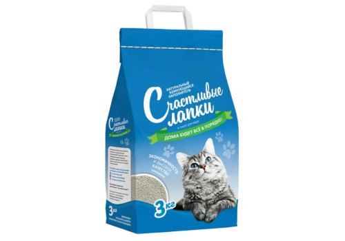 Счастливые лапки Наполнитель для кошачьего туалета Комкующийся 3 кг