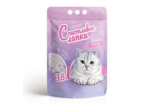 Счастливые лапки Наполнитель для кошачьего туалета Силикагелевый с ароматом Лаванды 3,8 л