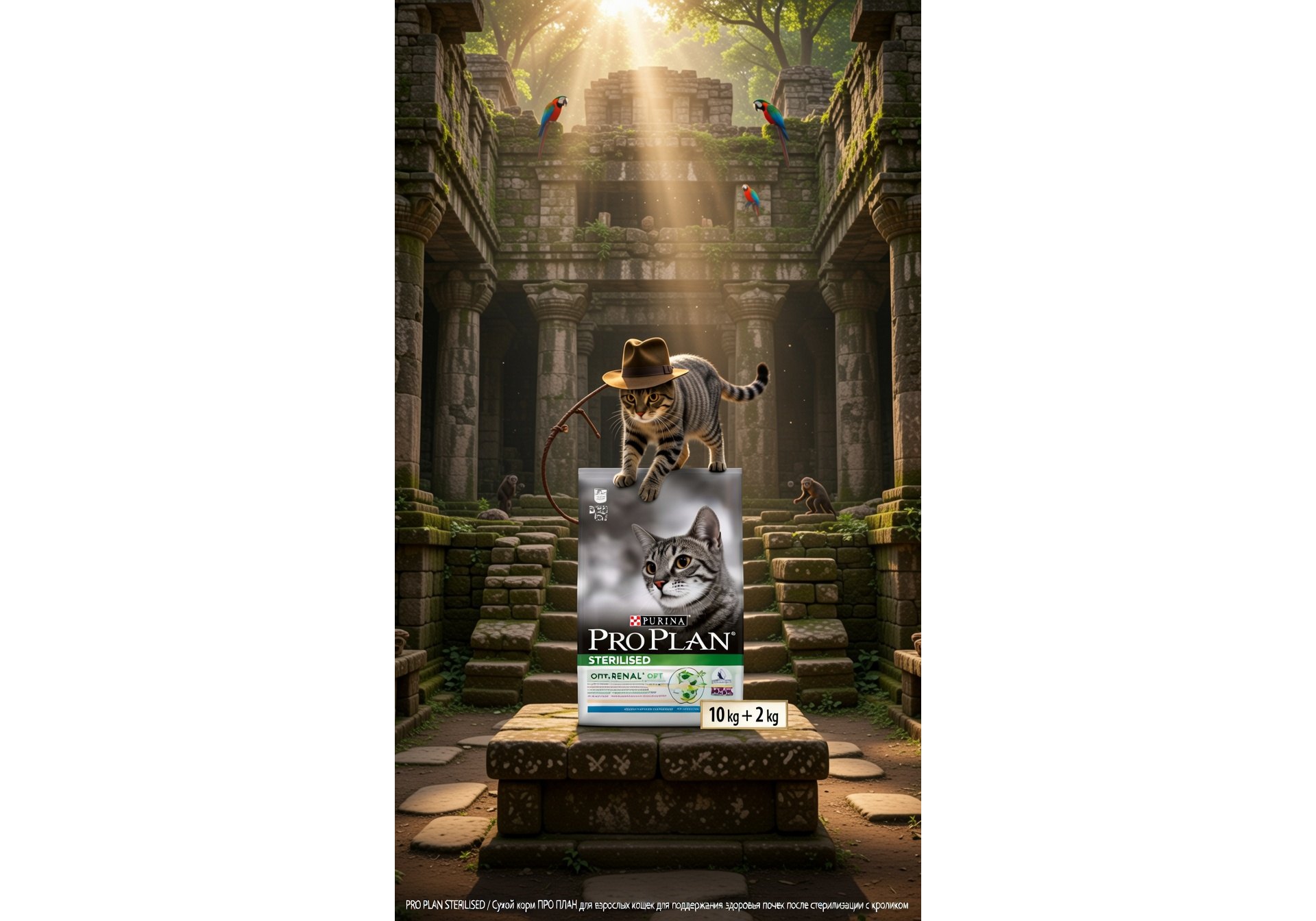PRO PLAN STERILISED Сухой корм ПРО ПЛАН для взрослых кошек для поддержания здоровья почек после стерилизации с кроликом 10 кг + 2 кг
