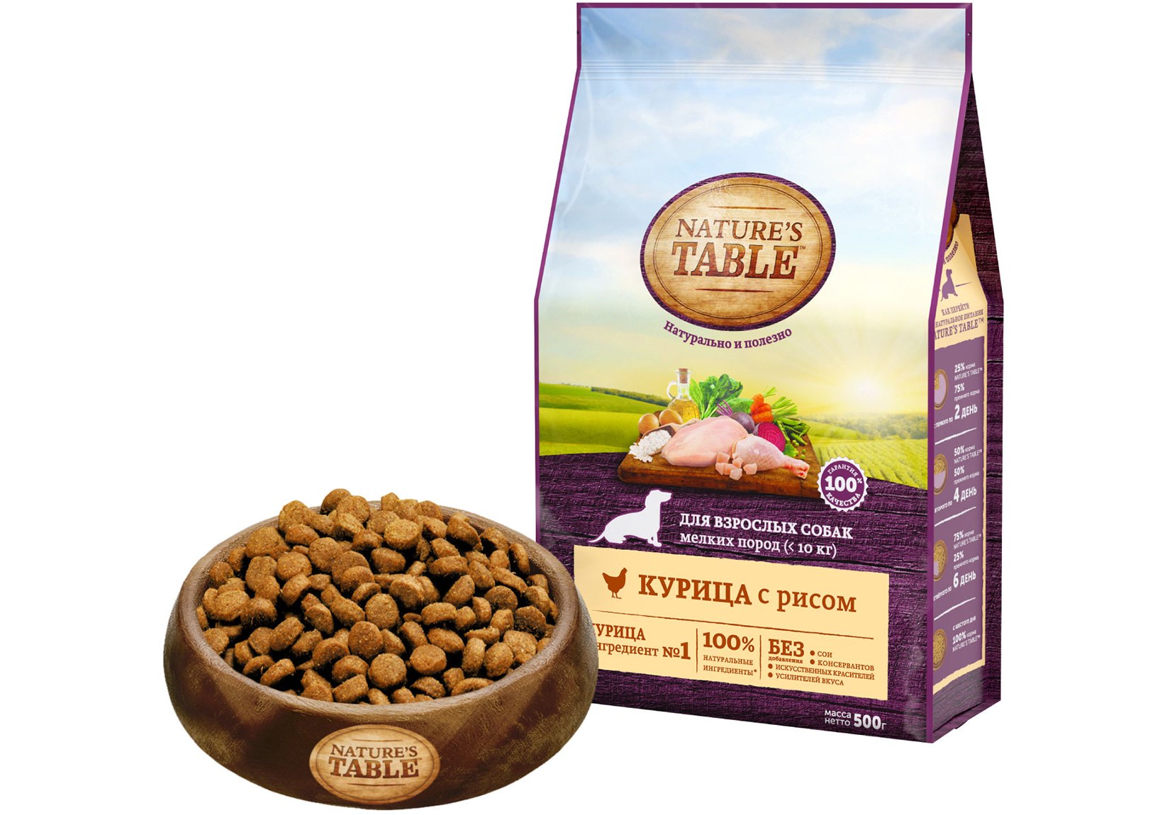 Natures Table Сухой корм Нейчерс Тейбл для взрослых собак Мелких пород Курица с рисом 500 г