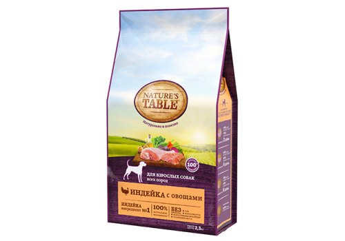Natures Table Сухой корм Нейчерс Тейбл для взрослых собак Индейка с овощами 2,3 кг