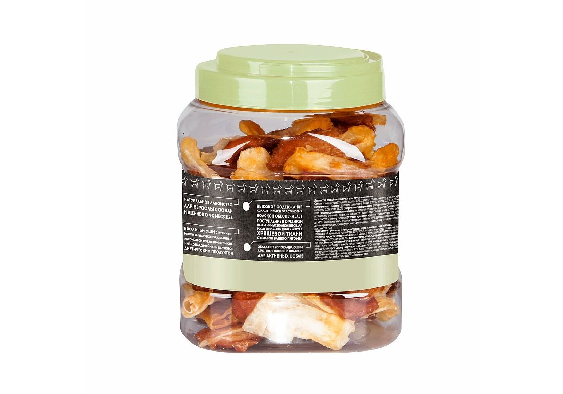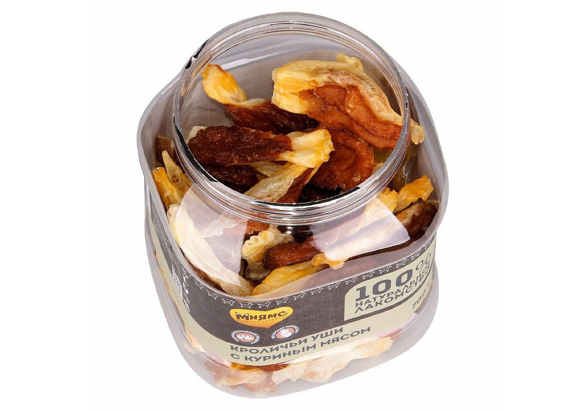 Кроличьи уши с куриным мясом «Мнямс» - это полезное диетическое лакомство, содержащее легкоусвояемый белок. Настоящий деликатес с вялеными ломтиками отборного филе не оставит равнодушным даже самого капризного любимца.