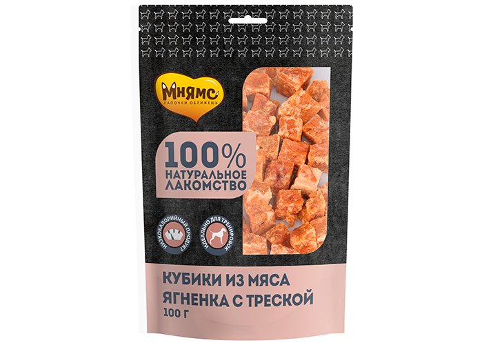 Мнямс Лакомство для собак Кубики из мяса Ягненка с треской 100 г