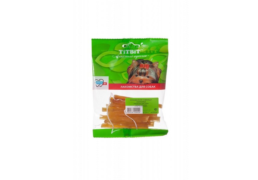 Titbit Dental+ Лакомый кусочек Лакомство Титбит для собак Сухожилия говяжьи Соломка для Чистки зубов 50 г