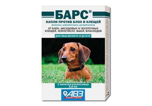 АгроВетЗащита Барс Капли против блох и клещей для собак весом от 10 до 20 кг (фипронил, дифлубензурон, дикарбоксимид) 1 х 2,8 мл