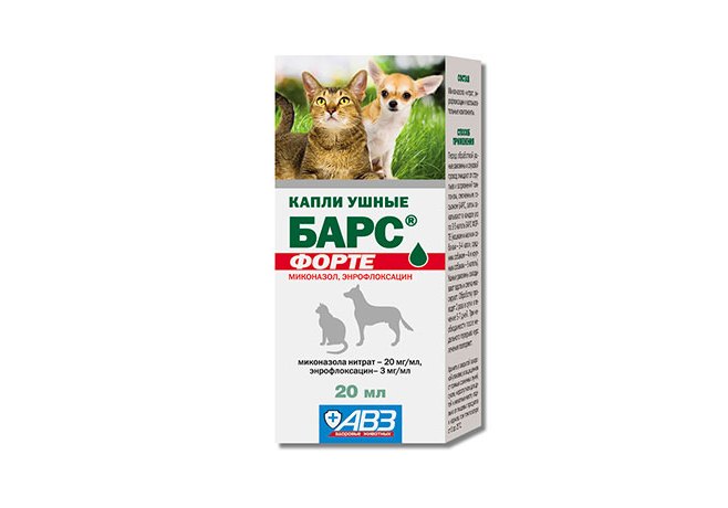 АгроВетЗащита Барс Форте Капли Ушные для собак и кошек Лечение отитов грибкового и микробного происхождения 20 мл