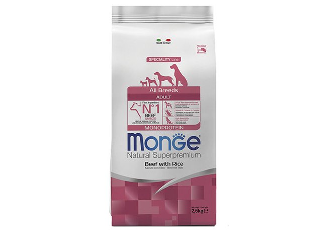 Monge Dog Monoprotein Adult All Breeds Beef with Rice Сухой корм Монж Монопротеиновый для собак всех пород Говядина с рисом 2,5 кг