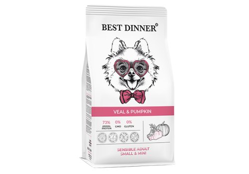 Best Dinner Sensible Adult Dog Small & Mini Veal & Pumpkin Сухой корм Бест Диннер для взрослых собак Мелких и Миниатюрных пород Телятина тыква 3 кг